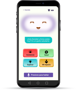 Más allá del cuidado físico, SIMA Care busca generar bienestar emocional. Propone actividades lúdicas, estimula la mente a través de su modo de entrenamiento cognitivo y contribuye a mejorar el estado de ánimo.